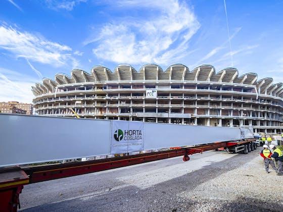 支撑未来瓦伦西亚体育场大屋顶的第一批结构支柱已于11月24日