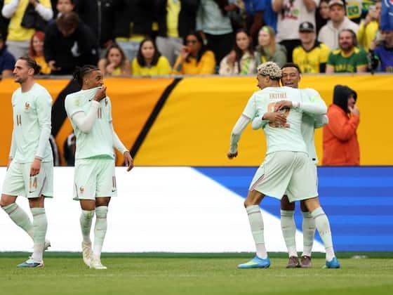 法国队在波士顿以2-1击败巴西队,这是他们三月份国际比赛日美