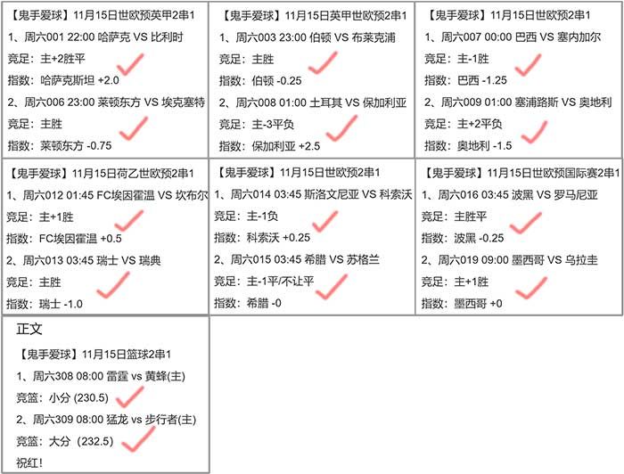 足篮整体命中11个2串1,其中主任足球14中13大红6个2串1,单场12中11附送4个2串1全红!