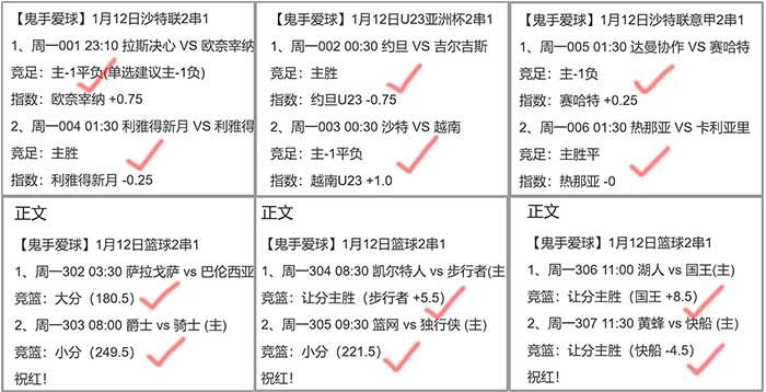 周四主任开的5场比赛全部被鬼手拿捏!公推利物浦大胜得手并命中4-0首选比分!另外4场组合的两个串全过!篮球更猛,5个串子拿下4个,3天命中10串!两组北单3对2附送的两个串子也全过!两天红了15个串子,接近完美!