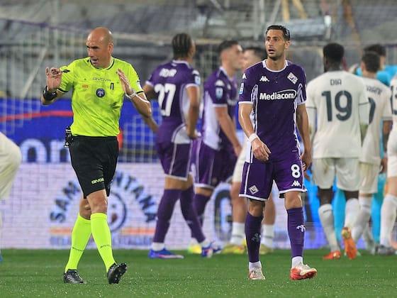 裁判迈克尔·法布里在周一佛罗伦萨和拉齐奥的意甲比赛中做出的有