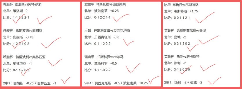昨日战绩回顾 波总公推红近6√5!单场2天全红!篮球2串1昨天4组√3组(近8组√7组)!