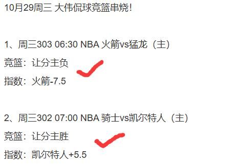 1日大伟:足球红2个4串1,1个3串,2个2串,NBA红2个串,公推好评!步行者vs公牛