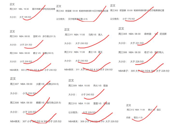 2. 西篮甲2组全红+NBA大小分5组2串1全红+命中2组单场:(周四篮球还待比赛)