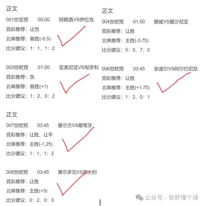 足球收世预赛友谊赛2串1,单场9中8附送3个2串1全红!