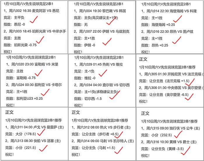公推36中26,篮球10中9大红4个2串1,单场9中8再收两个3串1!