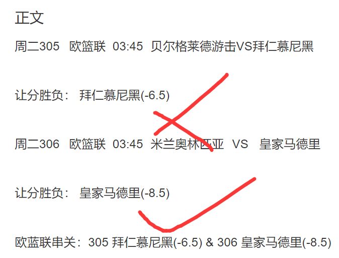 年叔战绩: 私菜准大满贯:其中NBA8组2串1全红,欧洲篮球6组√5组,足球2组全红