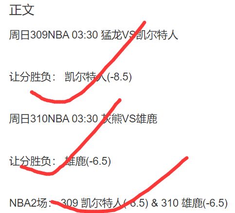 11.31号: 公推、私菜 大满贯:NBA8组2串1+足球4组2串1全红