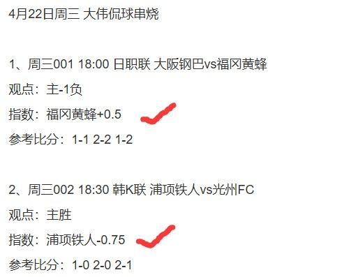 1、日职联+韩K联2串1,看好福冈黄蜂+浦项铁人方向打出!