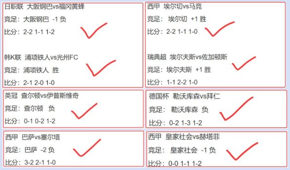 公推失手了,没想到曼城只赢1球,近4中3!主任足球红2单2串1!日职联福冈黄蜂不败+韩K联浦项铁人主胜先下一城,然后是西甲埃尔切不败+瑞典超埃尔夫斯不败再红一单!可惜另外四个方案分别命中伊普斯维奇、拜仁、赫塔菲以及巴萨,但4场方案都没有放到一起,最终只是2中1,太遗憾了。